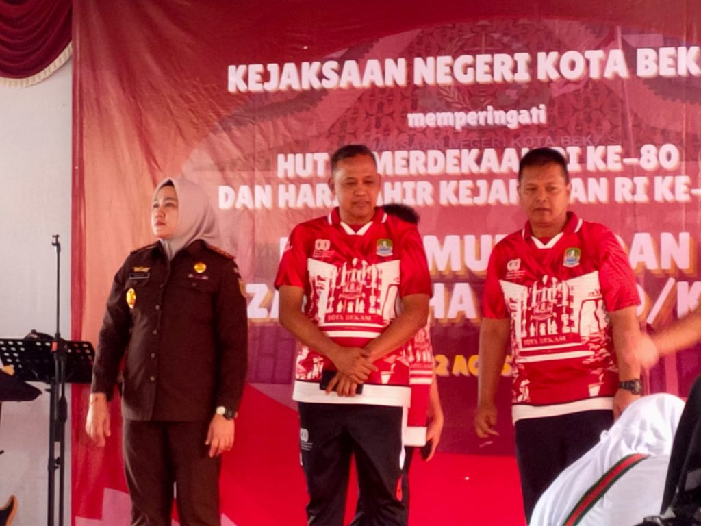 MediaKogamaa. Com. Kota Bekasi– Dalam rangka menyambut HUT RI ke-80 dan memperingati hari lahirnya Kejaksaan ke-80, Pemerintah Kota Bekasi bekerja sama dengan Kejaksaan Negeri Kota Bekasi dan Forkopimda menggelar operasi pasar murah di Halaman Kantor Kejaksaan Negeri Kota Bekasi, Rabu (12/08/2025)